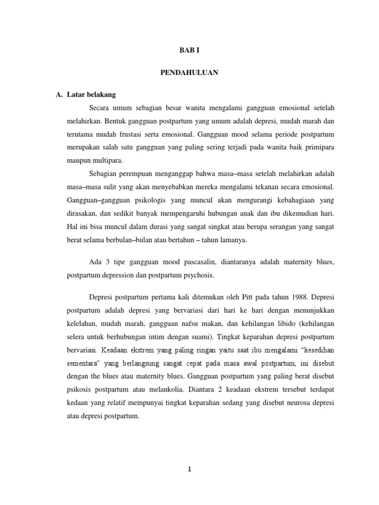 Jurnal Post Partum | Depresi Pascapersalinan | Gangguan ... from imgv2-2-f.scribdassets.com Depresi post partum ini adalah bentuk depresi berat yang mulai muncul dalam waktu hingga 4 minggu setelah melahirkan. Depresi post partum berbeda dengan sindrom baby blues yang berlangsung cukup singkat dan berakhir dalam beberapa minggu. Dari postpartum psychiatric syndrom yang. Pengertian depresi post partum adalah depresi berat yang terjadi 7 hari setelah melahirkan dan berlangsung selama 30 hari, dapat terjadi kapan pun bahkan sampai 1 tahun kedepan. Beberapa pengertian depresi postpartum menurut para ahli: Kartono (2002), menyatakan bahwa depresi adalah. Ini manfaat konsumsi buah manggis secara rutin untuk kesehatan. Gejalanya biasanya lebih parah dan lama dibandingkan dengan baby blues.